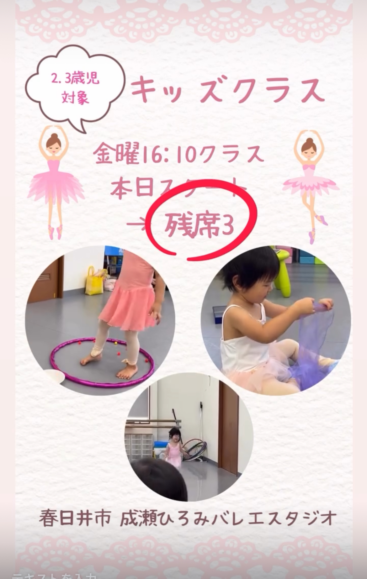 金曜日キッズクラス残席3